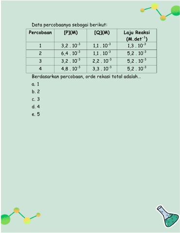 Percobaan [P](M) [Q](M) Laju Reaksi