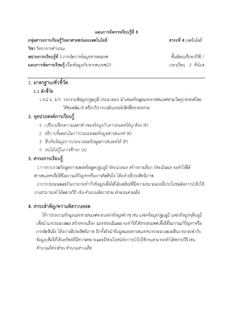 แผนการจัดการเรียนรู้ เรื่องข้อมูลกับสารสนเทศ(2) เวลาเรียน 2 ชั่วโมง