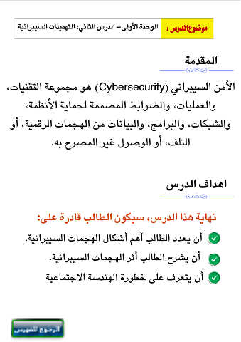 الوحدة الأولى – الدرس الثاني :التهديدات السيبرانية