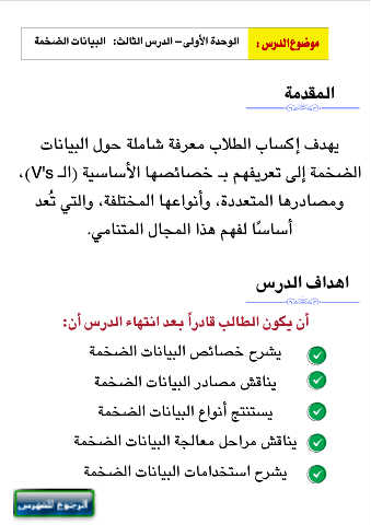 الوحدة الأولى – الدرس الثالث :البيانات الضخمة