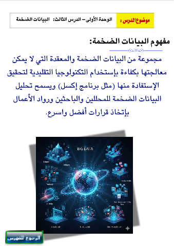 الوحدة الأولى – الدرس الثالث :البيانات الضخمة