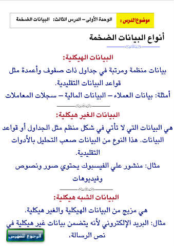 الوحدة الأولى – الدرس الثالث :البيانات الضخمة