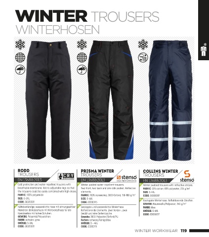 En Cold protective and water-repellent trousers with En Winter padded water-repellent trousers. En Winter padded trousers with reflective stripes.