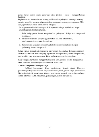 peran kunci dalam suatu pekerjaan atau jabatan yang menggambarkan