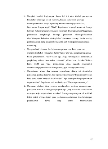 c. Mengevaluasi kekuatan dan kelemahan perusahaan. Pertanyaanyang