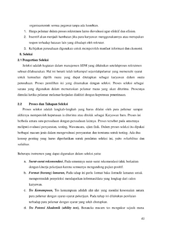 perusahaan. Proses pemilihan ini yang dinamakan dengan seleksi. Proses seleksi sebagai