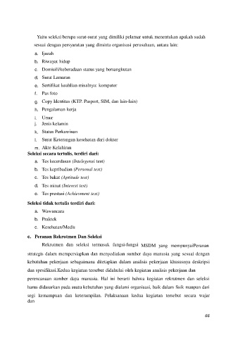 Rekrutmen dan seleksi termasuk fungsi-fungsi MSDM yang mempunyaiPeranan