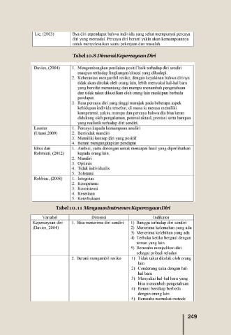 Tabel 10.8 Dimensi Kepercayaan Diri Tabel 10.11 Menyusun Instrumen Kepercayaan Diri 249