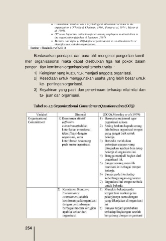 Tabel 10.15 Organizational Commitment Questionnaires (OCQ)