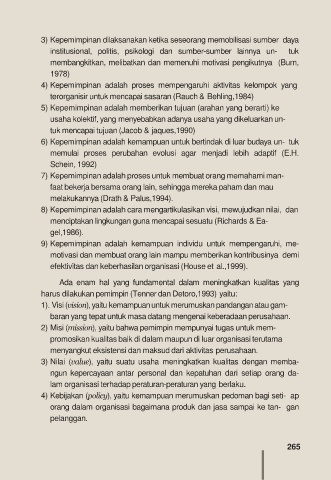 9) Kepemimpinan adalah kemampuan individu untuk mempengaruhi, me-