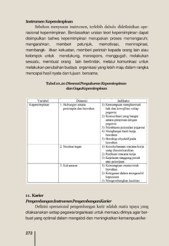 Tabel 10.20 Dimensi Pengukuran Kepemimpinan