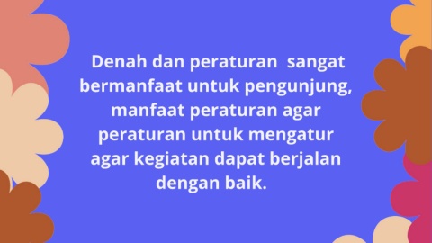 Denah dan peraturan sangat bermanfaat untuk pengunjung, manfaat peraturan agar peraturan untuk mengatur agar kegiatan dapat berjalan dengan baik.