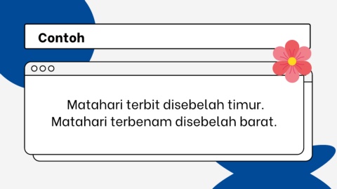 Contoh Matahari terbit disebelah timur. Matahari terbenam disebelah barat.