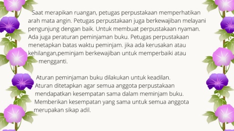 Ada juga peraturan peminjaman buku. Petugas perpustakaan