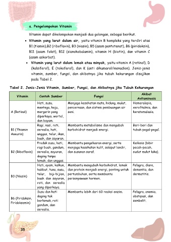 Tabel 2. Jenis-Jenis Vitamin, Sumber, Fungsi, dan Akibatnya jika Tubuh Kekurangan