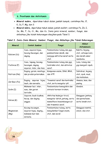 Tabel 3. Jenis-Jenis Mineral, Sumber, Fungsi, dan Akibatnya jika Tubuh Kekurangan