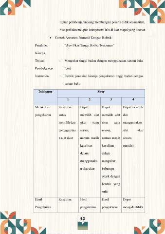Instrumen : Rubrik penilaian kinerja pengukuran tinggi badan dengan