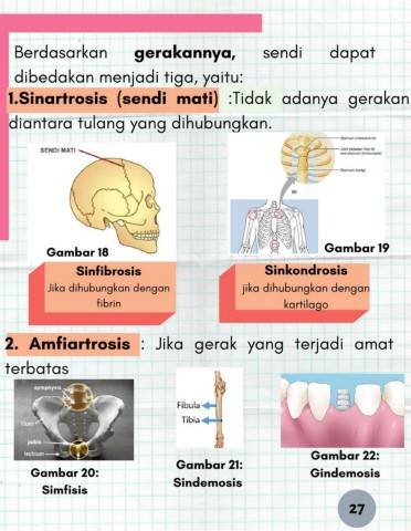 1.Sinartrosis (sendi mati) :Tidak adanya gerakan