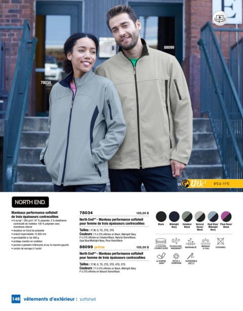 • 8 oz/vg² / 265 g/m², 97 % polyester, 3 % élasthanne North End MD - Manteau performance softshell