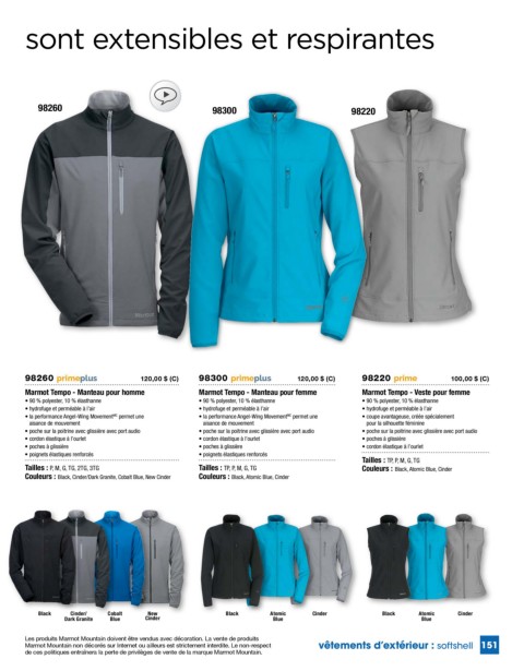 150 vêtements d’extérieur : softshell Les produits Marmot Mountain doivent être vendus avec décoration. La vente de produits vêtements d’extérieur : softshell 151