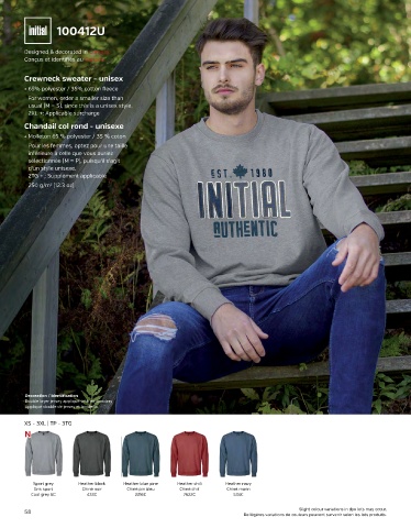 58 Slight colour variations in dye lots may occur . See the price list for garment and decoration costs. 59