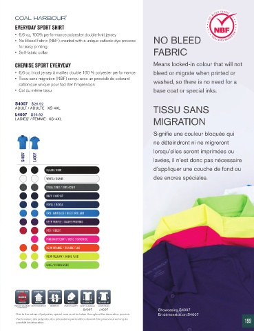 • 6,6 oz, tricot jersey à mailles double 100 % polyester performance bleed or migrate when printed or