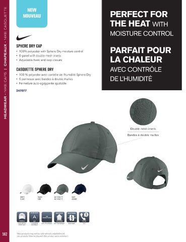 • 100% polyester with Sphere Dry moisture control PARFAIT POUR • 100% Dri-FIT polyester mesh