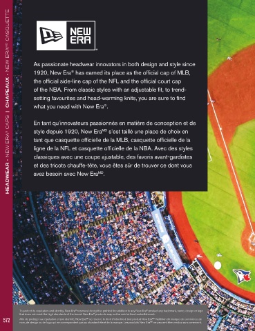 572 Afin de protéger sa réputation et son identité, New Era se réserve le droit d’interdire à tout produit New Era l’addition de marque de commerce, de 573