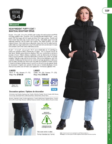 Men’s : S - 4XL / Homme : P - 4TG Ladies : XS - 2XL / Femme : TP - 2TG