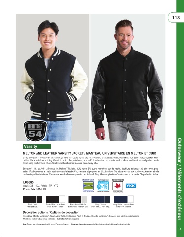 L06085 EMBROIDERY ACCESS TEMPERATURE RANGE DOMESTIC PRODUCTION Outerwear / Vêtements d’extérieur