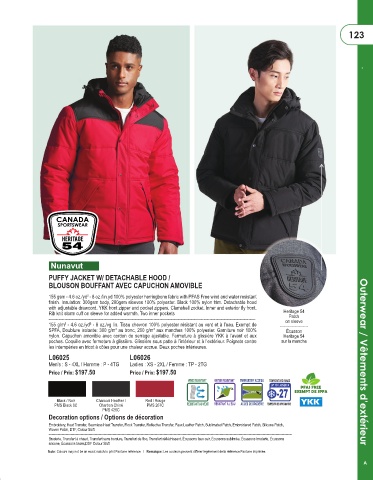 Men’s : S - 4XL / Homme : P - 4TG Ladies : XS - 2XL / Femme : TP - 2TG Outerwear / Vêtements d’extérieur