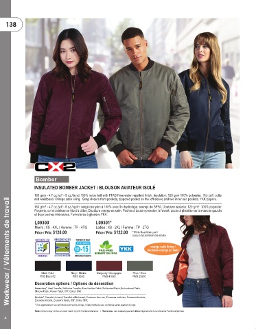 Men’s : XS - 4XL / Homme : TP - 4TG Ladies : XS - 2XL / Femme : TP - 2TG