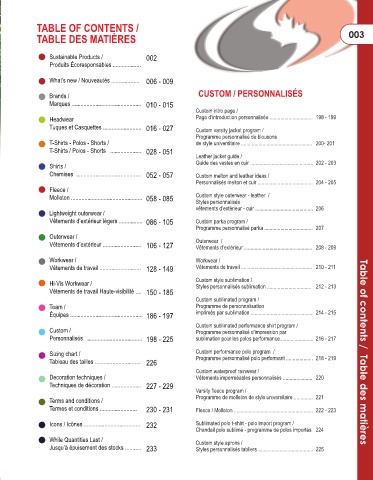 Termes et conditions ......................... 230 - 231 Fleece / Molleton ........................................................... 222 - 223