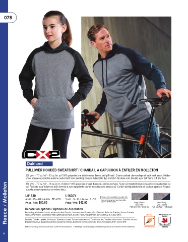Fleece / Molleton Decoration options / Options de décoration ! Draw cord not available on youth style PMS CG 10C / Black 6C PMS CG 10C / PMS 532C