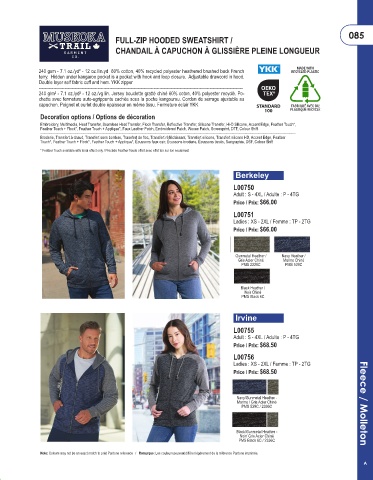 240 gsm - 7.1 oz./yd² - 12 oz./lin.yd 60% cotton, 40% recycled polyester heathered brushed back French RECYCLED PLASTIC
