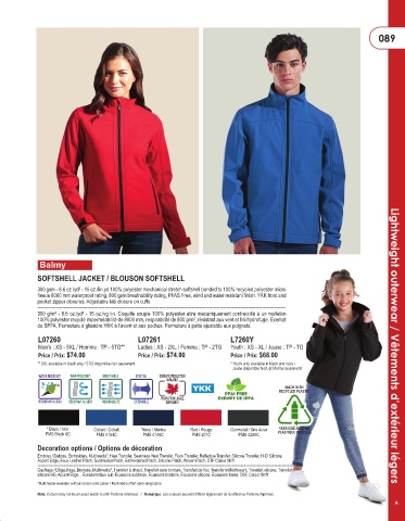 Men’s : XS - 5XL / Homme : TP - 5TG** Ladies : XS - 2XL / Femme : TP - 2TG Youth : XS - XL / Jeune : TP - TG Lightweight outerwear / Vêtements d’extérieur légers