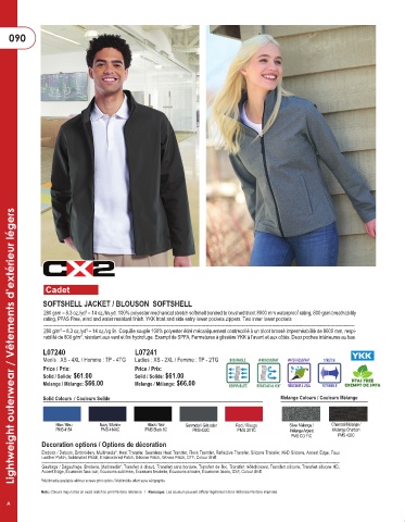 Men’s : XS - 4XL / Homme : TP - 4TG Ladies : XS - 2XL / Femme : TP - 2TG BREATHABLE WIND RESISTANT WATER RESISTANT STRETCH