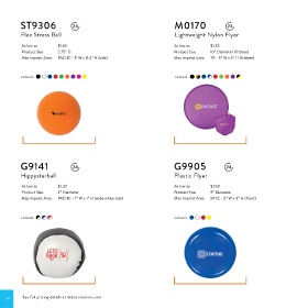 Max Imprint Area PAD 1C - 1” W x 0.5” H (side) Max Imprint Area TR - 5” W x 5” H (frisbee)