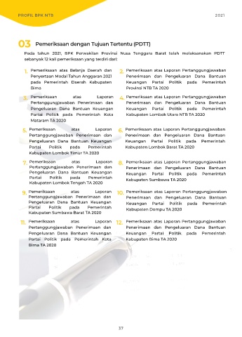 Pada tahun 2021, BPK Perwakilan Provinsi Nusa Tenggara Barat telah melaksanakan PDTT