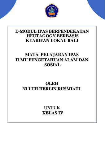 E-MODUL IPAS BERPENDEKATAN HEUTAGOGY BERBASIS KEARIFAN LOKAL BALI MATA PELAJARAN IPAS ILMU PENGETAHUAN ALAM DAN SOSIAL OLEH NI LUH HERLIN RUSMIATI UNTUK KELAS IV