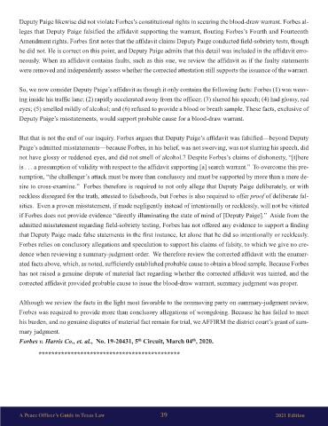 But that is not the end of our inquiry. Forbes argues that Deputy Paige’s affidavit was falsified—beyond Deputy