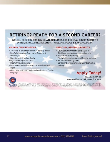 12 www.texaspoliceassociation.com • (512) 458-3140 Texas Police Journal