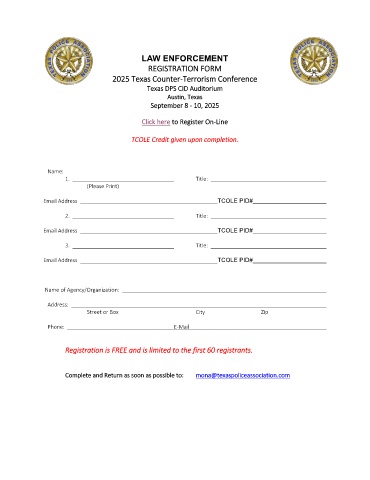 Complete and Return as soon as possible to: mona@texaspoliceassociation.com