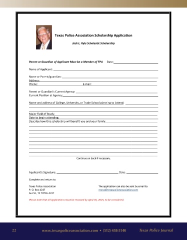22 www.texaspoliceassociation.com • (512) 458-3140 Texas Police Journal