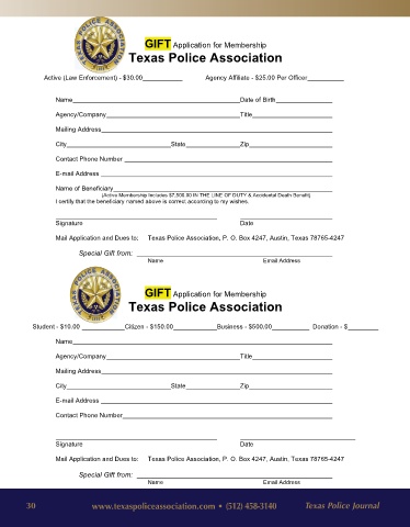Mail Application and Dues to: Texas Police Association, P. O. Box 4247, Austin, Texas 78765-4247