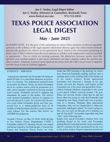 34 www.texaspoliceassociation.com • (512) 458-3140 Texas Police Journal