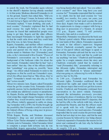 to search the truck, but Fernandez again referred was being handcuffed and asked, “Are you addict-