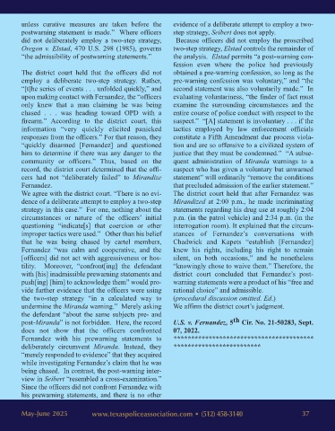 post-Miranda” is not forbidden. Here, the record U.S. v. Fernandez, 5 th Cir. No. 21-50283, Sept.