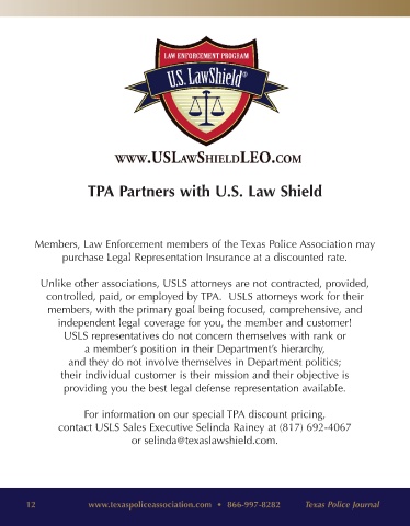 12 www.texaspoliceassociation.com • 866-997-8282 Texas Police Journal