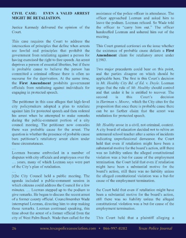 minutes. … Lozman stepped up to the podium to the Court held that even if retaliation might have